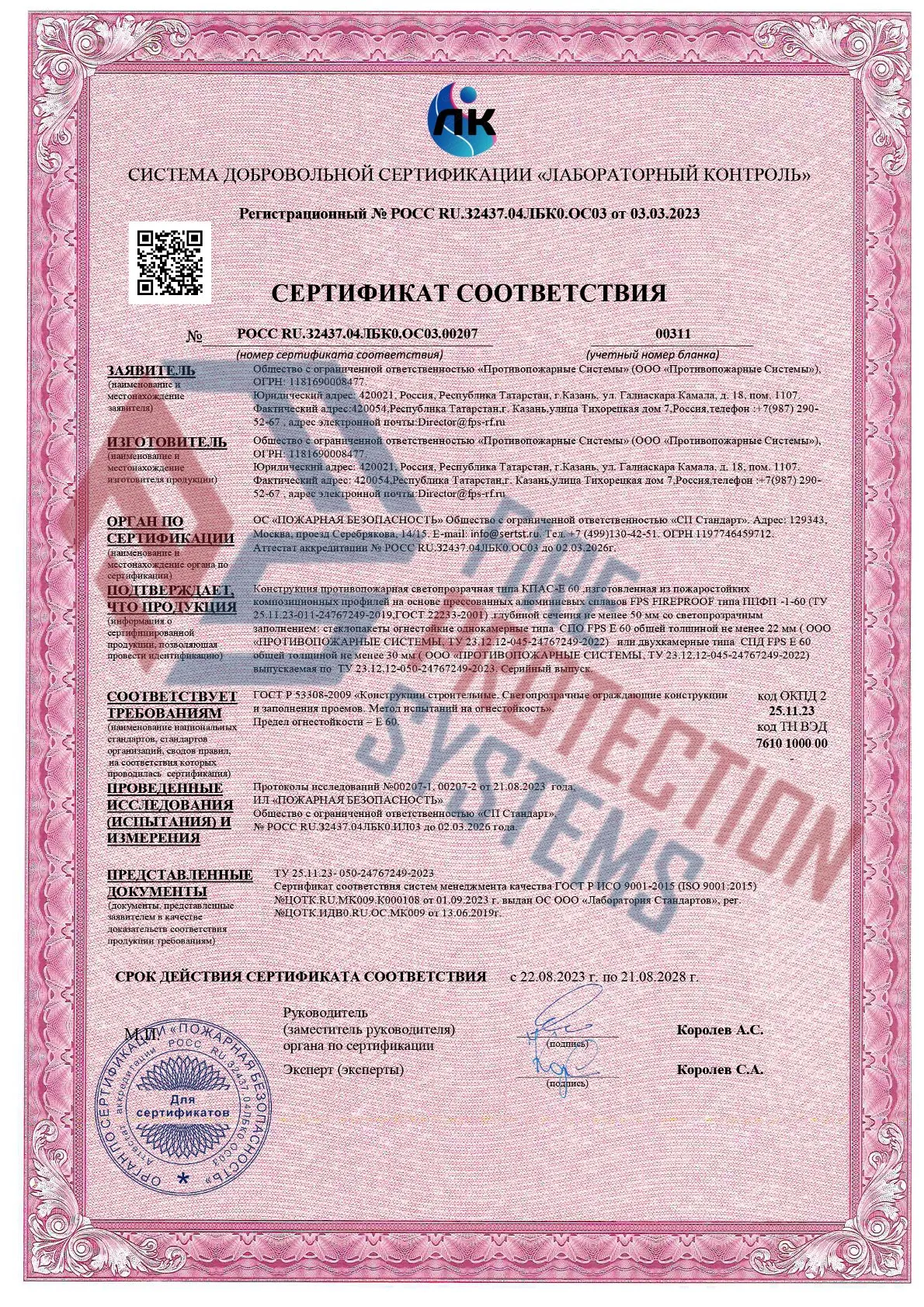 Противопожарные светопрозрачные перегородки отличаются следующими свойствами: